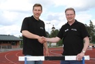 Tänään allekirjoitettiin työsopimus. Kuvassa Virin puheenjohtaja Antero Asikainen toivottaa Timon tervetulleeksi Viriin.