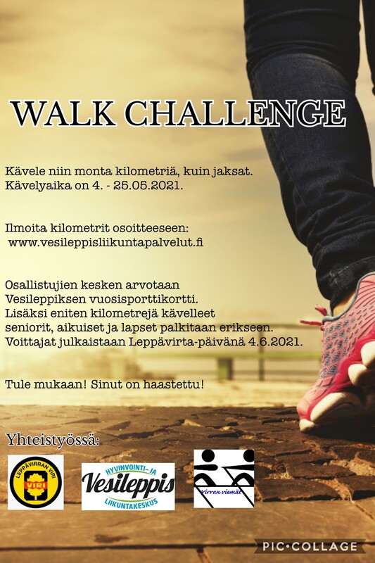 Leppävirran Viri, Virranviemät ry, Leppävirta ja vesileppisliikuntapalvelut haastavat kaikki Suomen Ladun kävelytempaukseen. Ilmoita 4.-25.05.2021 kävellyt kilometrit ja voit voittaa mahtavia palkintoja!