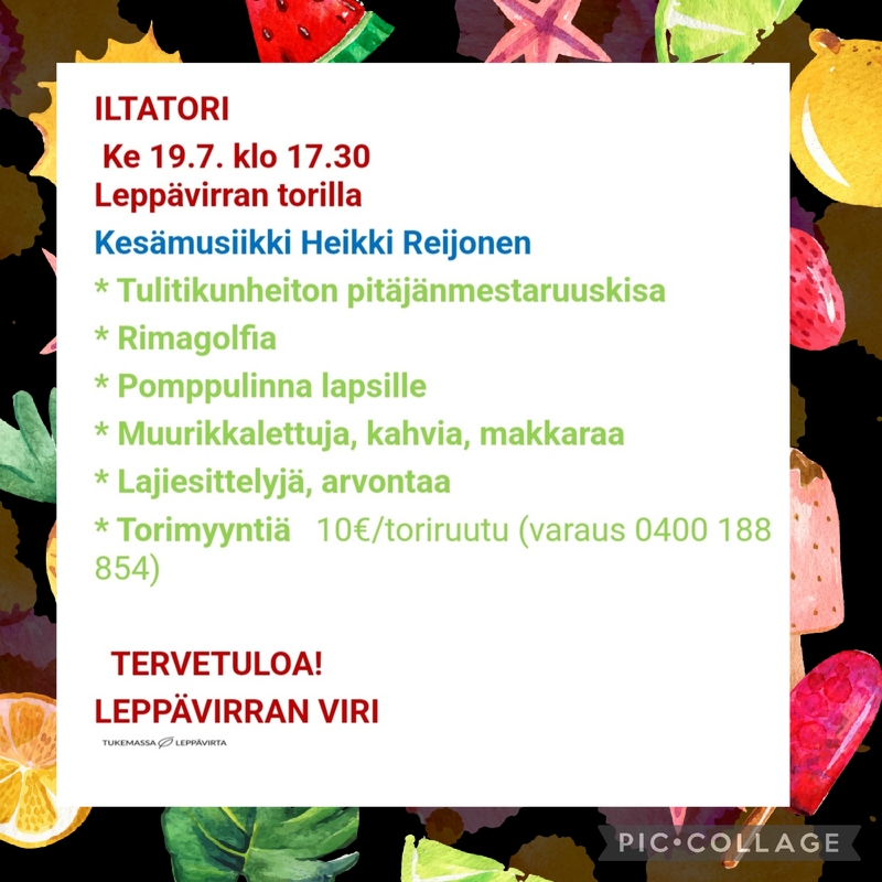 ILTATORI KE 19.7. KLO 17.30 LEPPÄVIRRANTORI