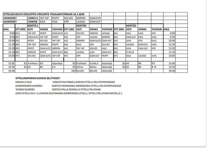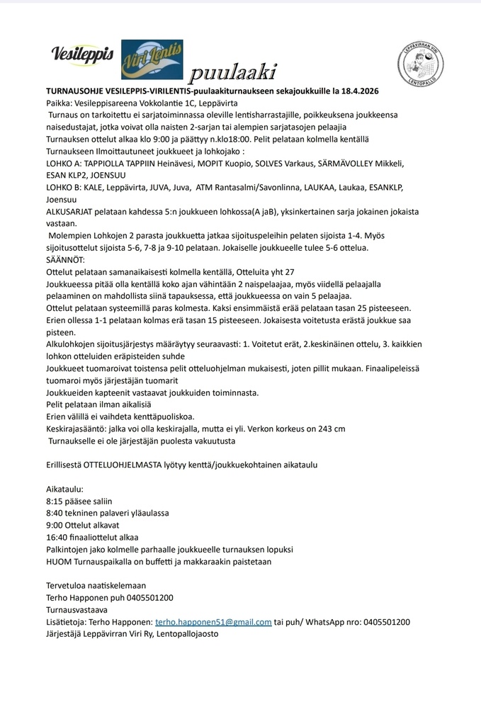 VESILEPPIS-VIRILENTIS puulaakiturnaus 18.4.2026